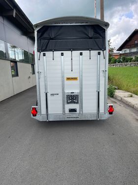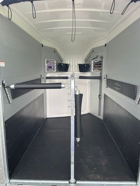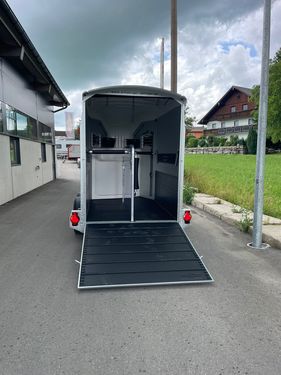 Polybug im aerodynamischen Rippendesign Zweifarbige LED-Streifen für eine optimale Lichtverteilung im Innenraum Verstellbare Heunetzhalter Extralange Auflaufklappe (1700 mm) mit Trittleistengummi und Seitenstopp Stabiles, feuerverzinktes Heckportal für eine bessere Sicht nach hinten Einstiegstüre mit voller Durchgangshöhe EquiDrive Fahrwerk mit Radstoßdämpfern (2400 kg) Komplett neu entwickeltes, sehr robustes und feuerverzinktes Fahrgestell Abschließbare Sattelkammer mit ausziehbarem Sattelhalter, Trensenhalter, Spiegel, Netz, Innenbeleuchtung, Schaufel und Besen Einstiegs- und Sattelkammertüre mit 3-Punkt-Verriegelung Aufbau aus doppelwandigen, eloxierten Aluminiumprofilen AluBiComp-Boden, 21 mm stark, 15 JAHRE GARANTIE Gummiboden, 8 mm stark, eingeklebt und versiegelt Seitentrittschutz EquiLock verriegelbare Trennwand Geteilte und gepolsterte Brust- und Heckstangen, höhen-und längenverstellbar, mit EquiGuard Panikentriegelung Exklusives Windschott für zugfreie Innenraumbelüftung Automatik-Stützrad, mittig montiert, mit Rangiergriff 13-poliger Stecker mit Rückfahr- und Nebelschlussleuchte 100 km/h Bestätigung (nur für Deutschland) Gewicht in kg: 949 Nutzlast in kg: 1.451 Zul. Gesamtgewicht in kg: 2.400 Gesamtmaß in mm (LxBxH): 4.720 x 2.222 x 2.900 Innenmaß in mm (LxBxH): 3.550 x 1.700 x 2.380 Ladehöhe in mm: 445 Bereifung in Zoll: 15Zul. Gesamtgewicht (t): 2,4