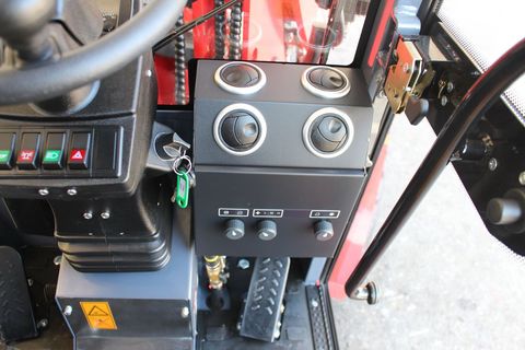 - AKTION!! inkl. Geräte # Kubota 3-Zylinder Dieselmotor Stage V # Hydrostatischer Automotiver Fahrantrieb # V+R Schaltung am Joystick # Allradantrieb # Bucher Hydraulik mit 3.+ 4. Hydr.-Steuerkreis # Hydraulikölkühler # Vollhydraulische Lenkung # Hydraulischer Werkzeug-Schnellwechsler "Toyo-Aufnahme" # Komfortsitz verstellbar mit Armlehnen und Sicherheitsgurt # Beleuchtungsanlage LED # Arbeitsscheinwerfer vo./hi., Rundumleuchte LED # Kombi-Instrument mit Tankanzeige, Betriebsstundenzähler, Temperaturanzeige # Kabine mit Heizung, Scheibenwischer, Radio # Rückfahrkamera mit Display # fixes Zugmaul # Bereifung 26x12.00-12 AS-Profil # Verbaut sind europäische Komponenten wie Bondioli Getriebe und Bucher Hydraulik Tech. Daten: # max. Hub-/Schaufelhöhe gerade: 2.238mm # Betriebsgewicht: 1.760 kg # max. Hubkraft: 1.000 kg # Kipplast gerade/geknickt: 870 kg/500kg # max. Arbeitsbreite: 1.100mm # Spurbreite: 803mm # Gesamthöhe: 2.210mm ! AKTION kostenlos mit: # Schaufel 110 cm Toyo # Palettengabel verstellbar Toyo Für weitere Fragen stehen wir Ihnen gerne zur Verfügung. Wir freuen uns auf Ihre Anfrage!Kontaktdaten: