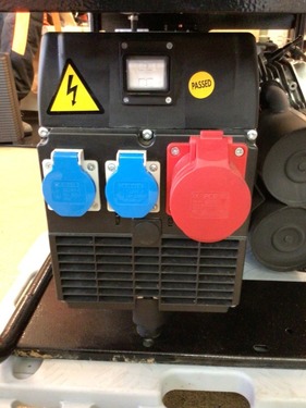 Stromgenerator, Notstromgruppe, Zapfwellengenerator, Notstromversorgung- Dreiphasig 400 V- 43.3 Ampere- Leistung 30 kVA- Frequenz 50 Hz (geregelt, hält die Hz)- Antrieb Zapfwelle- Dreipunkt-Anbau, Gewicht:218, Seriennummer:113895 VÖLLMIN LANDTECHNIK AG