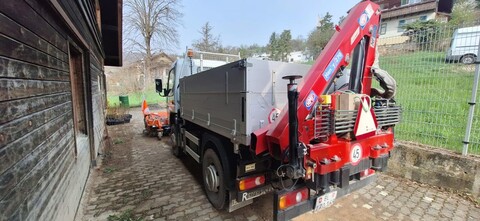 Lastwagen, Transporter, Kran- Lastwagen mit Kran - Leergewicht 3750Kg- Nutzlast 3740Kg- Gesamtgewicht 7490Kg- 45Km/h- 33810Km- 2900h- Kran Handy 270- Ab MFK (April 2025), Gewicht:3750, Seriennummer:W09R4D27581P08834 VÖLLMIN LANDTECHNIK AG