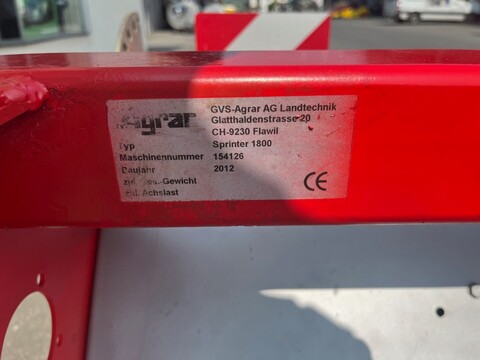 Aufbereiter AgrarSprinter 1800Konditionierblech 5-Fach verstellbarSchwenkbremseBreitverteilablage, Seriennummer:154126Kontaktdaten: