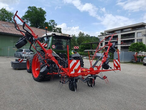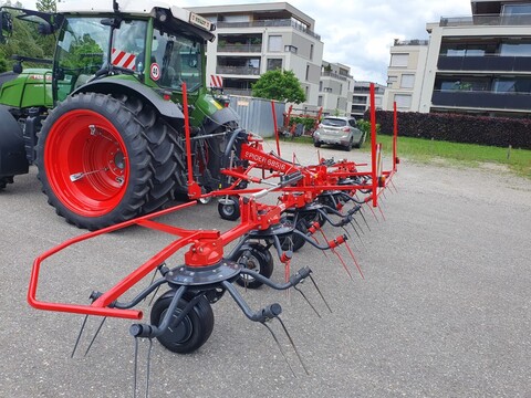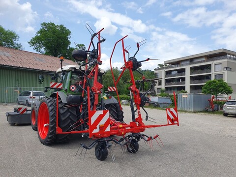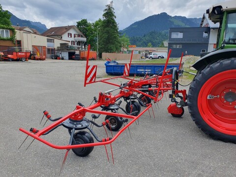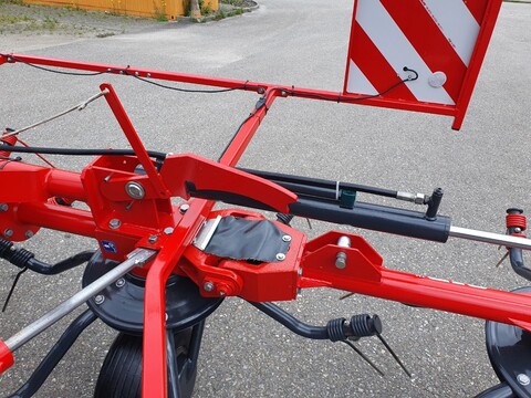 Arbeitsbreite 6.8 m, 6 Kreisel mit je 6 Zinkenarmen,inkl. 3-Punkt-Schwenkbock mit Stabilisatorenhydraulisch Klappbar mit Vorgewendestellunginkl. Zinkenverlustsicherungmit Randstreueinrichtung mechanischinkl. grosse Bereifung 15x6.00-8inkl. Tastradinkl. Beleuchtunginkl. Gelenkwelle, Gewicht:790