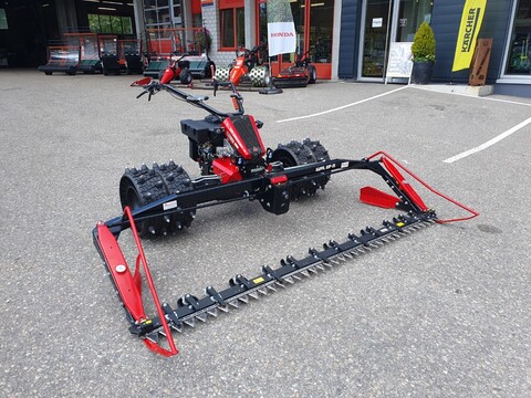 2 Zylinder-Motor 18PShydrostatischer Fahrantrieb, vorwärts-rückwärts mittels EasyDriveTurnaround-AktivlenkungÖlkühler mit UmkehrfunktionLED ScheinwerferGewichtsgrundplatte mit GewichtHöhenverstellbarer HolmenBreitspurachseX-Tweel Stachelwalzen (andere Bereifung auf Anfrage möglich)Doppelmessermähwerk 2.60m (anderes Mähsystem auf Anfrage möglich), Gewicht:215