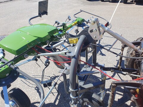 mit SchwenkbockArbeitsbreite 4.30m6 Zinkenarme pro Kreiselinkl. Tastradinkl. Zinkenverlustsicherunginkl. Randstreueinrichtunginkl. Vorgewendestellungmit Seilführung über Rollenmit zusätzlicher, einstellbarer Zugfeder für bessere Nachlaufeigenschafteninkl. Gelenkwelle, Gewicht:420