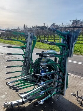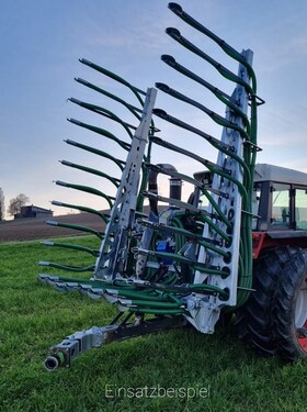 Schleppschuhverteiler BETEC Hilly 7.5 m für Traktor 3-Punkt-Anbau- macht Verschlauchen mit SchleppSCHUH praxistauglich- beitragsberechtigtes Schuhsystem im Kt. TG für Fördergelder des Massnahmenplan AmmoniakGegenüber Schleppschlauch-Systemen wird die Futterverschmutzung reduziert durch:- Schuhabstand 25 cm- Gleitschuh mit Gummilippen für tief-liegende, schmale Ablage der Gülle- aktive Druckkraft auf Schuh 8-12 kg möglich- exakte Verteilung mit rotierendem Verteilkopf 'Opticut Profi' mit selbstschärfender Schneideinheit und Luftnachsaugung- Montageposition des Verteilkopfs erhöht, für besser Sicht nach hinten beim Verschlauchen- elektrohydraulische Komfortsteuerung mit Terminal 'Smart Control' für die Funktionen:- Verteilerkopf- Klappung automatisch mit hydraulischer Folgesteuerung (äussere Klappung manuell, zB zum Versorgen)- Ablasschieber- Stauschieber- LED Arbeitsbeleuchtung- Schwenkrohr 'Profi Snake' mit Drehkupplung und Storz Anschluss- LED Verkehrsbeleuchtung mit Warntafeln/Warnmarkierung- St, Gewicht:1200