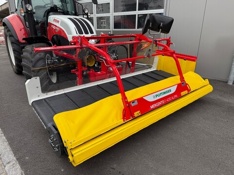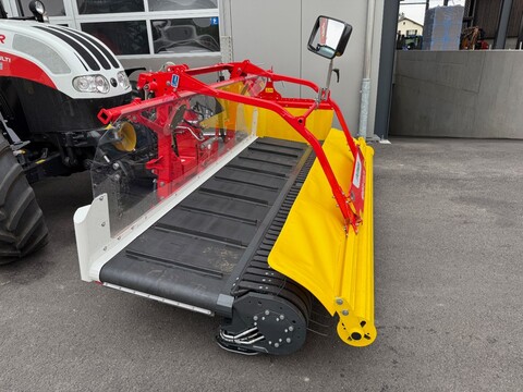 MERGENTO F 4010 ALPIN- Dreipunktanbat Kat. 1 / Kat. 2- Querpendelung +/- 8 Grad- Vorwahlschaltung mit BASIC CONTROL- elektrische Banddrehzahleinstellung - Drehrichtung vom Querförderband (62cm Tief) links / rechts und oder Futter laden.- verstellbares Schwadtuch auf der linken Seite - Rollenniederhalter- Spiegelhalter inkl Frontspiegel- auf Wunsch Optionales Zapfwellengetriebenes Hydraulikaggregat zum HeckanbauAufnahmebreite: 3.08mArbeitsbreite: 4mLeistungsbedarf: 60PSErfordert 1 DW oder 1 EW mit Rücklauf, Gewicht:670