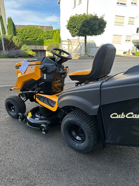 2-Zylinder Cub Cadet Benzin-Motor mit 18 PS, Voll Hydrostat-Getriebe, Bedienung über Fusspedal, schwimmend aufgehängtes Mähwerk 106 cm Schnittbreite, 320 Liter Grasfangsack, akustische Füllstandsanzeige, Tankvolumen 11.4 Liter, Gewicht ca. 268 kgListenpreis Fr. 5'784.-