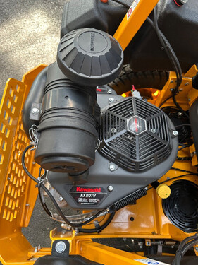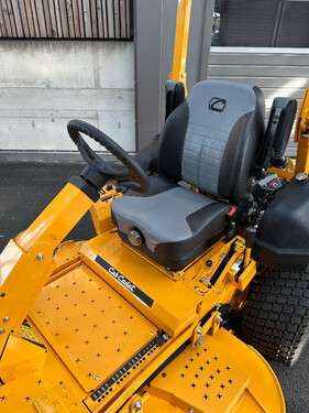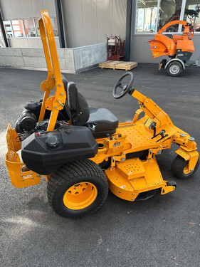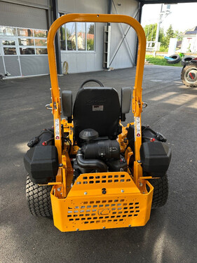 Kawasaki 2-Zyliner Benzinmotor mit 28 PS, Schnittbreite 152 cm, Schnitthöhe 17 Positionen 26-127 mm, Zero-Turn Lenkung (Null Wendekreis) mit Lenkrad, Geschwindigkeit vorwärts 16 km/h, rüchwärts 8 km/h, gefederter Sitz mit Armlehnen, Überrollbügel, Gewicht:680