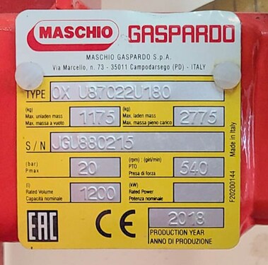 Marke & Typ: Spritze Gaspardo mit 18 m Balken, Tempo 1201-18m Beschreibung: Behälterinhalt/Nenninhalt: 1.298 l / 1.200 l, Frischwassertank/Handwaschtank: 127 l / 15 l, 4-Kolben- Membran Pumpe: 162 Liter, 20 bar, 4-fach Filtersystem, Einfüllsieb, Saugfilter, Druckfilter mit Selbstreinigungsfunktion und Düsenfilter, Behälterinnenreinigung mittels Rotationsdüse, Hochleistungsrührwerk zuschaltbar, Manuelle Rührwerkabschaltung, Arbeitsbreite Gestänge: 15 m, Vollhydraulische 7 teilige Klappung per Spraydos, Halbseitige Klappung, Hydr. Hangausgleich: +/- 6,5°, 5 Teilbreiten, Hydraulische Höheneinstellung des spritzgestänges, Hydraulische Federung des Spritzgestängeträgers, 3-fach Düsenträger mit Membranabschaltventil, Steuerung, Kontrolle und Überwachung durch Müller Spraydos, Einspüleinrichtung, Gelenkwelle und Werkzeugbox für Mittelverwahrung, Gefederte Abstandshalter für äußerste Teilbreiten, Bediencenter links inkl. Aufstieg zum Behälter, Beleuchtung 10.600,00 10.600,00 ArtNr.: U87220067 30,00 ID, Seriennummer:JGU880215