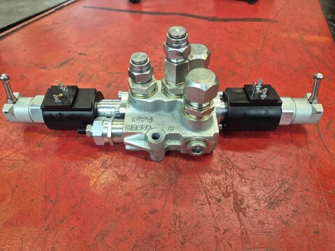 2-Kanal Funksteuerungssatz für hydraulisch angetriebene Winden, Ölmotore oder Hydraulikzylinder mit 12 Volt Monoblock VentilDer Funk ist mit einem 7-poligem KFZ-Stecker ausgerüstet, das Elektromagnetventil ist doppeltwirkend und verfügt über einen Anschluss zur Druckweiterführung, die Anschlüsse zu den Arbeitszylindern sind in der Null-Stellung gesperrt Keine Schwimmstellung in der Null-Stellung!Technische Daten:12 V 3 ADurchfluss max. 50 L/min.Betriebsdruck: max. 175 barAnschlüsse: 1/2 Zoll IG Ein- /Ausgang und Verbraucher, 1/2 Zoll AG zur DruckweiterführungSteuerventil mit zusätzlicher manueller Not-Bedienung.Funkfernsteuerung Akerströms S800 Empfänger (Neuwert 589.–)Funkfernbedienung Akerströms S800 Sender (Neuwert 189.–)Steuerventil FAIE