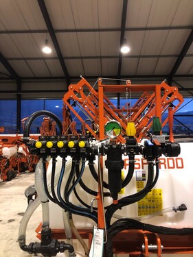 Gaspardo Typ SAURO 801, 12.0 m hydr.Serienausstattung- Behälterinhalt/Nenninhalt: 853 Liter/800 Liter Frischwassertank 104 Liter Handwaschtank 15 Liter- 3-fach-Kolben-Membran-Pumpe: 117 Liter/20 bar- 4-fach-Filtersystem, Einfüllsieb, Saugfilter,Druckfilter und Düsenfilter- Behälterinnenreinigung mittels Rotationsdüse- Deviokit-Hahn zur Reinigung des Gestänges ohne Spritzbrüheverdünnung- Manuelle Rührwerkabschaltungs- Man. Hangausgleich absteckbar in 5 Positionen- 12 m Gestänge mit hydraulischer Klappung(12,0 und 15,0 m, halbseitige Klappung möglich)- 5 Teilbreiten- Mechanische Höheneinstellung des Spritzgestänges mittels Winde- 1-fach Düsenträger mit Membranabschaltventil, Schnellverschlussbajonettkappe MultiCap und 1 Lechler AIR Injektor Kompakt Flachstrahldüse 120-04-POM 90 %- Einspüleinrichtung- Abstandshalter für äußere Teilbreiten- Aufstieg zum Behälter links und rechts- Gelenkwelle- Geräteprüf-Plakette Pflanzenschutz für Tempo und Campo- Kontinuierliche Tankinnenreinigung SAURO, TEMPO, TEKO