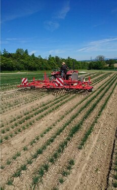 Striegel Einböck Aerostar 500 SemiExactGemüse, Kartoffeln und Beet-Kultuhren 1.5 mZinken 600mm lang Ø 7mmHydr. Zinkenverstellung pro Feld montiertEingestellt auf Traktorspur 1.50 mSpurweite Aussen 4.5 mBeleuchtung nach hintenVariante : Einböck - Pneumatisches Sägerät P-Box-STI mit El-Antrieb------------------------------------------------------------Herse étrille Einböck 5.00 SemiExact pour les légumesles pommes de terre, les platebandes.Dents de Ø 7mm et 600 de longCylindres hydr. pour le replis des élémentsRéglée pour une voie de 1.5mÉcartement extérieur 4.5mEclairage vers l'arrièreVariante : Einböck - Semoir pneumatique P-Box-STI à entraînement électriqueVO016857