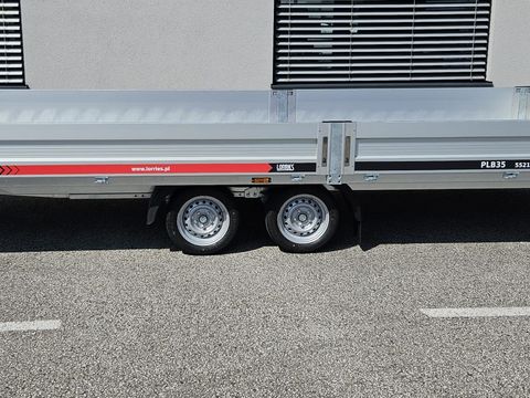 GG: 3.500 kg, NL: ca. 2.502 kg, EG: ca. 998 kg Lademaße: ca. 5528 x 2160 x 350 mm Bereifung: 195/50 R13C, Kippwinkel: 9° Tandem, auflaufgebremst, kippbar Stabiler, geschweißter Stahlrahmen (feuerverzinkt) Gasdruckdämpfer für Kippvorrichtung Aluminium-Bordwände 350 mm, abklapp- und abnehmbar Seitenbordwände mit Mittelrunge geteilt, Langwegverschlüsse Plywood-Holzboden (wasser- und rutschfest), Seilwinde mechanisch Stützrad automatik, Stahlfelgen, Alu-Verladeschienen unterschiebbar Schienenschacht unter der Ladefläche, Verzurrleiste links und rechts 2 Stk. Unterlegkeile, LED-Beleuchtung, Stecker 13-polig Inkl. TypenscheinZul. Gesamtgewicht (t): 3,5