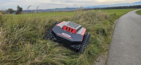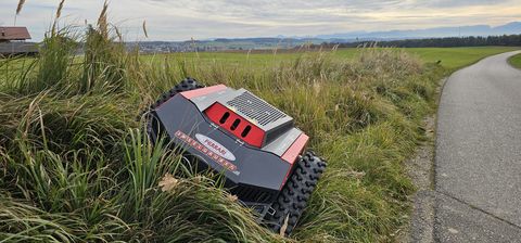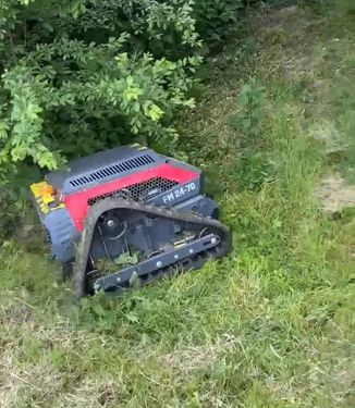 BLUEBIRD-Mähraupe FM 24‑70 – Kraft trifft Kontrolle! Die Bluebird Mähraupe FM 24‑70 ist die perfekte Lösung für anspruchsvolle Mäharbeiten in schwer zugänglichem oder steilem Gelände. Dank ihrer robusten Bauweise, modernem Hybridantrieb und intuitiver Fernsteuerung ist sie ideal für den professionellen Einsatz im Garten- und Landschaftsbau sowie auf privaten Großflächen. Leistungsstark & effizient Ausgestattet mit einem zuverlässigen Hybridantrieb – bestehend aus einem kraftvollen Benzinmotor und zwei leistungsstarken Elektromotoren – meistert die FM 24‑70 selbst hohes Gras und dichte Vegetation mühelos. Die Schnittbreite von 70 cm sorgt für schnellen Arbeitsfortschritt, während die schwimmend gelagerten Pendelmesser saubere Ergebnisse liefern. Komfortable Fernsteuerung Die 2,4 GHz-Fernbedienung mit bis zu 200 m Reichweite ermöglicht eine präzise und sichere Steuerung – auch in steilem oder unwegsamem Gelände. Die Schnitthöhe lässt sich bequem per Funk stufenlos von 30–120 mm einstellen. Steigfähig & sicher Mit kompakten Abmessungen von 990 × 1 080 × 610 mm und einem Eigengewicht von rund 230 kg ist die Mähraupe wendig, transportfreundlich und dennoch äußerst stabil. Die integrierte LED-Beleuchtung sorgt für gute Sicht – auch bei schlechten Lichtverhältnissen. +Antrieb Hybrid: Benzinmotor + 2 Brushless-Elektromotoren +Motor (Benzin) Loncin 4-Takt, 452 cm³, ca. 9,2 kW (12,5 PS) +Elektromotoren 2 × 800 W Brushless +Schnittbreite 70 cm +Schnittsystem Pendelnd gelagerte Doppelmesser +Schnitthöhe Stufenlos, per Funksteuerung einstellbar: 30–120 mm +Steigfähigkeit Bis zu 45° +Fahrantrieb Raupenlaufwerk, 3-stufig, bis 47 m/min +Steuerung 2,4 GHz Funkfernsteuerung (Reichweite bis 200 m) +Sicherheitsfunktionen Automatische Abschaltung bei Kippgefahr +Beleuchtung LED-Front- und Rückleuchten +Abmessungen (L × B × H) 990 × 1 080 × 610 mm +Gewicht ca. 230 kg (modellabhängig auch bis 280 kg möglich) +Geräuschpegel ca. 95 dB(A) (je nach Last) +Kraftstofftank ca. 5 Liter (abhängig vom Modell) Bis zu 7 Jahre Zahlungsziel Wir beraten Sie gerne.Kontaktdaten: