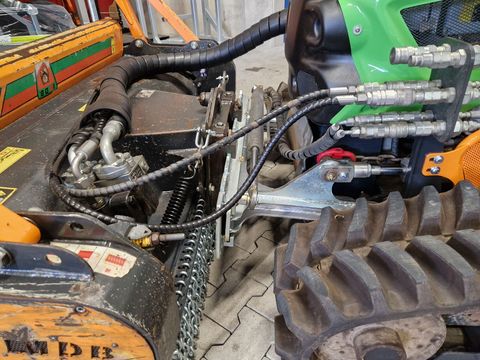 VOGT Profitechnik aus Schmallenberg – Ihr führender Anbieter für professionelle Landschaftspflegetechnik = Mehrere VOGT-Standorte + 100 Servicepartner in Deutschland & Österreich = Eigener VOGT Lieferservice + mobiler VOGT Kundendienst = Schnelle und zuverlässige Ersatzteilversorgung innerhalb 24h = Hohe Qualitätsstandards und ausgezeichnetes Know-How seit 1926 MDB Funkraupe Typ: GREEN CLIMBER LV800 75 PS (55 kW) Common-Rail-Dieselmotor (310 Nm) CLEANFIX Wendelüfter (wassergekühlt) max. 50° Hangneigung mit Kettenfahrwerk (400 mm hydraulisch verstellbar) mit 500 mm hydraulischer Seitenverschiebung des Anbaugerätes mit 500 mm mechanischer Seitenverschiebung des Anbaugerätes mit Hochfrequenz-Funksteuerung (2,4 Gigahertz Frequenzstärke) Inklusive : Hochstollen Inklusive : Forstmulchkopf zur MDB Funkraupe LV800 Typ: TF 150 150 cm Arbeitsbreite feste Fräswerkzeuge mit Wolfram-Cabon-Beschichtung Mulchgehäuse aus HARDOX-Stahl hydraulische Frontklappe inkl. Anbaukonsole mit QUICK-RELEASE-System Multifunktions-Geräteträger für Forstarbeiten und Landschaftspflege = Hochleistungs-Hydrauliksystem mit max. 100 l/min bei 350 bar Leistung = Kippsicherheit bis 50° Neigung = flexible Spurbreitenverstellung von 1500-1900 mm 75 PS (55 kW) KOHLER-Dieselmotor STAGE V = hocheffizienter Common-Rail-Dieselmotor (4 Zylinder) = äußerst drehmomentstark (310 Nm) = geringer Kraftstoffverbrauch dank modernster Motorentechnik Patentierte Motorschmierung = einzigartiges MDB-System ermöglicht dauerhaft störungsfreies Arbeiten in extremen Hanglagen und verhindert langfristige Motorschäden = Dauerschmierung bis 75° Neigung des Motors = bei gewöhnlichen Funkraupen besteht oftmals Gefahr durch mangelnde Ölversorgung (Motorschäden) bei Dauerbetrieb in Steillagen CLEAN-FIX Wendelüfter = Wasserkühlung mit automatischem Umkehrgebläse (Gebläsereinigung) = automatisches Reinigungsintervall (auch manuell über Funk steuerbar) HIGH-POWER-Hydrauliksystem = unabhängige Axial-Kolbenverstellpumpen aus Gusseisen = geringe Ölerwärmung durch großen Ölkühler & Hydrauliktank HEAVY-DUTY-Grundrahmen = massive Konstruktion mit Unterbodenschutz (Eigenfertigung) = stabiles Fahrwerk mit Kettenführungsrollen und zentraler Führungskufe Patentiertes LOW-CENTER-Fahrwerk = unübertroffen niedriger Geräteschwerpunkt ermöglicht in Kombination mit Spurbreitenverstellung einzigartige Kippsicherheit in steilen Hängen = gefahrloses Arbeiten an Hängen bis zu 50° Neigung Hydraulische Fahrwerksverstellung (1500-1900 mm) = Fahrwerk kann hydraulisch ein- und ausgefahren werden (per Funk) = schmale Spur in verengten Einsatzbereichen (z.B. zwischen Hindernissen) = breite Spur für absolute Hangstabilität in extremen Steilhängen Seitenverschiebung/Aushebung des Arbeitsgerätes = 500 mm hydraulische Seitenverschiebung des Arbeitsgerätes = 500 mm mechanische Seitenverschiebung des Arbeitsgerätes = hydraulische Aushebung/Absenkung des Arbeitsgerätes (doppeltwirkend) Hochfrequenz-Funkanlage (2,4 Gigahertz Frequenzstärke) = MDB-Funksystem im Hochfrequenz-Bereich (2,4 Gigahertz) ermöglicht störungsfreies Arbeiten (Niederfrequenz-Funk deutlich störanfälliger) = permanenter AUTO-Frequenzwechsel (beugt Frequenzstörungen vor) = bis zu 150 Meter Reichweite (sicherer Abstand zum Arbeitsgerät) 4-Wege-Joystick = Fahrbewegungen der Raupe mit nur einer Hand steuerbar = voll-proportionale Einhandbedienung ermöglicht feinfühlige Steuerung = 2. Hand bleibt frei für Bedienung der Zusatzfunktionen oder zur Sicherung Funktionen der Funkbedienung = Steuerung aller Arbeits- und Zusatzfunktionen per Funkbedienung = voll-proportionaler 4-Wege-Joystick für Fahrbewegungen = voll-proportionaler 4-Wege-Joystick für Seitenverschiebung/Aushebung QUICK-RELEASE Schnellwechselanbau = Schnellwechselsystem für über 30 verschiedene Arbeitsmaschinen = Nutzung der MDB Funkraupe als multi-funktioneller Geräteträger Weitere Serienausstattung = Fettpresse mit Druckmanometer zur Einstellung der Kettenspannung = 12 Volt BOSCH-Batterie (inkl. Batterietrennschalter) Forstmulchkopf zum Anbau an MDB Funkraupe = professioneller Forstmulcher mit hydraulischem Antrieb = verstärkte Ausführung für Forstpflege im Schwachholz bis 300 mm Ø = hydraulisch verstellbare Frontklappe = massives Mulchgehäuse aus hochfestem Stahl HEAVY-DUTY Kolbenmotor aus Gusseisen = geringe Ölerwärmung und effektive Leistung = integriertes Freilaufventil (Nachsaugeinrichtung) POWER-BELT-Riemenantrieb = zusätzliche Überlastungssicherung bei extremer Beanspruchung HEAVY-DUTY-Schlegelrotor mit hoher Schlagkraft = gute Sogwirkung durch hohe Umlaufgeschwindigkeit des Rotors = 420 mm Wirkdurchmesser des Rotors Fräswerkzeuge = feste Fräswerzeuge mit Wolfram-Carbid-Beschichtung = saubere Zerkleinerung von starkem Geäst und Stammholz bis 300 mm Ø Doppel-Pendelrollenlager (Rotor / Laufwalze) = hochwertige Doppel-Pendelrollenlager in großen Abmessungen = innenliegend und geschützt verbaut (Feuchtigkeit, Schmutz, Staub) QUICK-RELEASE-Schnellwechselsystem der neuesten Generation = einfacher und schnellerer An- und Abbau des Gerätes = inkl. praktischer, sicherer Halterung für FASTER-Hydraulikkuppler Weitere Serienausstattung = seitliche Gleitkufen (schraubbar) aus HARDOX-Stahl Für Rückfragen und weitere Informationen stehen wir Ihnen telefonisch oder per Mail jederzeit zur Verfügung. Bei näherem Interesse besuchen Sie gerne einen unserer VOGT-Vertriebsstandorte, damit Sie sich persönlich von der Leistungsstärke der Maschine überzeugen lassen können. Wir freuen uns auf Ihre Kontaktaufnahme! "SONDERPREIS für Gebrauchtmaschine mit vielen NEUTEILEN " Gerätezustand: Gebrauchtgerät (Betriebsstunden : 860) Baujahr: LV800 2020 (TF-150 2020) Seriennummer: LV800 0049 (TF-150 0021) Irrtümer, Änderungen und Zwischenverkauf vorbehalten.Kontaktdaten: