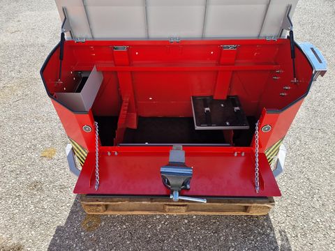 - 3-Punkt und Euro-Aufnahme kombiniert - wasserdichter Deckel mit Dämpfer - abklappbares Vorderteil mit integrierten Schraubstock -verschiedene Verstellmöglichkeiten im Stauraum - ausziehbare Standfüße - Spritkanisterhalter - Motorsägenhalterung außen - Stoßfänger/Anfahrschutz - Aufpreis für Transportwagen 230€ - Gewicht 187kgKontaktdaten:
