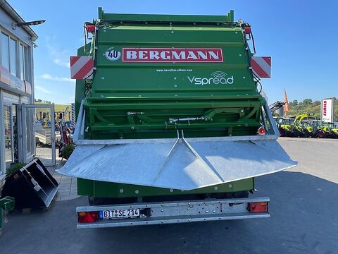 Vorführstreuer Bergmann TSW5210S mit V-SPREAD-Streuwerk aus Ende 2023, Modell 2024 - Untenanhängung mit K80 - A L B - Nachlauflenkache - verstärkte Gelenkwellen - 2-Walzen-Streuwerk mit Kardanantrieb - hydr. Grenzstreueinrichtung - 2. Verkehrbeleuchtung oben an der Klappe - LED-Scheinwerfer im Laderaum - Bordwandaufsätze beidseitig 300mm - Rundstahl auf den Fräswalzen (besseres Abschneiden von Seilen usw.) - Fuhrenzähler - farbige KENNFIXX auf den Schläuchen - Dreiwegehähne zwischen Grenzstreueinrichtung und Streuwerkshaube - Räder 710/50R26,5 BKT - Zulassung 40 Km/h Der TSW 5210 S ist ein zweiachsiger Universalstreuer mit einem zulässigen Gesamtgewicht von 20 bis 22 Tonnen. Er ist mit einer konischen Ganzstahlwanne sowie einem robusten und wartungsarmen Antrieb ausgestattet. Das Fräswerk ist mit zwei horizontalen Fräswalzen ausgestattet und hat einen Durchgang von 1.500 mm. Auf den Fräswalzen sind für die optimale Zerkleinerung des Streuguts geschraubte, einfach austauschbare Doppelzinken in V-Form angebracht. Serienmäßig erfolgt der Antrieb der Fräswalzen mittels Rollenketten. Optional kann für den Antrieb der Fräswalzen der Kardanantrieb gewählt werden. Das serienmäßige Standard-Tellerstreuwerk ist mit zwei Streutellern (je ø 1.000 mm, je sechs verstellbare Streuflügel) ausgestattet. Optional ist das innovative und patentierte Breitstreuwerk V-Spread mit zwei v-förmig angeordneten Streutellern (je ø 1.100 mm, je sechs verstellbare Streuflügel) erhältlich. Beide Streuwerke sind für die optimale Verteilung aller Streugüter (Stalldung, Kompost, Kalk, etc.) bestens geeignet. Mit dem Standard-Tellerstreuwerk sind - abhängig vom Streumaterial - Arbeitsbreiten bis 24 m möglich, mit V-Spread Arbeitsbreiten bis 36 m. V-Spread erzielte im DLG-Test Bestnoten und wurde mit dem Prüfzeichen "DLG anerkannt" ausgezeichnet. Die hohe Optionsvielfalt ermöglicht die optimale Anpassung an die Anforderungen des Nutzers. Der Preis der Maschine bezieht sich auf den technischen Zustand und die Ausrüstung wie lagernd. Aus etwaigen Irrtümern und falschen Angaben entstehen keinerlei Ansprüche. Gerne sind wir telefonisch für Sie erreichbar. Sollten Sie uns eine Nachricht schreiben wollen, möchten wir sie bitten, uns Ihren vollständigen Namen und eine Telefonnummer zu schicken. Ohne dies werden wir keine Nachricht mehr beantworten. Bei nicht deutschsprachigen Interessenten bitten wir um die Emailadresse und wir schreiben über ein Übersetzungsprogramm zurück.Kontaktdaten: