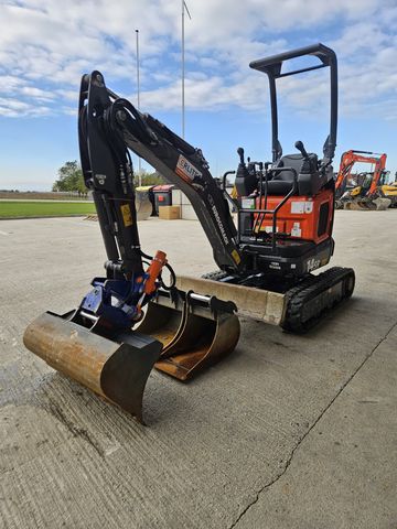 - KUBOTA STAGE V - Tier 4 Final Diesel Motor 719 cc-13,7 PS wassergekühlt - Hydraulische Anlage open center / KOLBENPUMPE - Ausfahrbares Fahrwerk 790mm - 1050mm - nach Hinten klappbarer (ROPS – TOPS) Rollbügel **Technische Daten und Eigenschaften:** - **Leistung:** 14 PS - **Baujahr:** 2024 - **Betriebsstunden:** 230 Stunden - **Antriebsart:** Diesel - **Zustandsklasse:** Besonders gut (Klasse 1) **Zusatzsteuerkreise proportionalgesteuert:** - **AUX 1:** Hammer / Greifer - **AUX 2:** Schwenkwechsler - **AUX 3:** Hydraulischer Schnellwechsler **Ausrüstung:** - Hydraulischer Schnellwechsler Zylinder- Schwenkantrieb 2x45° - Inklusive Löffelpaket auf Wunsch mit gebrauchtem Hydraulikhammer EPIROC SB52 Dieser Minibagger ist baugleich mit dem CASE CX14D, was für seine hohe Qualität und Verlässlichkeit spricht. Suchen Sie nach einem robusten und vielseitigen Minibagger, der mit Marken wie Takeuchi, Wacker Neuson und Kubota vergleichbar ist, dann ist dieser Eurocomach Minibagger die ideale Wahl für Sie.Kontaktdaten: