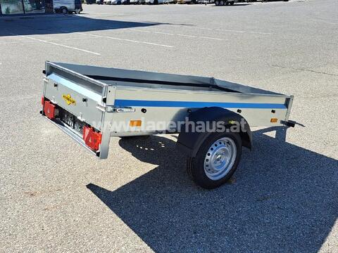 Humbaur PKW Anhänger Steely Gesamtmaße: 2960 x 1545 x 805 mm Innenmaße: 2050 x 1095 x 300 mm Ladehöhe: 495 mm Höchstzulässiges Gesamtgewicht: 750 kg Nutzlast: 630 kg Eigengewicht: 120 kg Einachs ungebremst V-Zugdeichsel Bordwände aus verzinktem Stahlblech Heckklappe mit Spannverschlüssen Eckrungen mit Einsteckmöglichkeit Bodenplatte 9 mm stark 4 Anbinderinge an den Bordwandinnenseiten Zugkraft pro Anbindering: 100 kg 13 poliger Lichtstecker Multifunktionsbeleuchtung 13 Zoll Bereifung ; Artnr.:04833, Standort der Maschine: RLH ZwettlZul. Gesamtgewicht (kg): 750