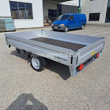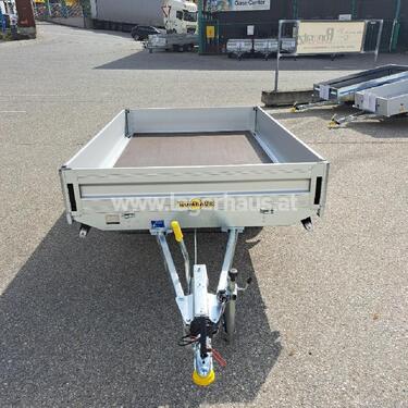 Humbaur PKW Anhänger HN 132616 Gesamtmaße: 3920 x 1713 x 930 mm Innenmaße: 2650 x 1650 x 300 mm Ladehöhe: 625 mm Höchstzulässiges Gesamtgewicht: 1300 kg Nutzlast: 962 kg Eigengewicht: 338 kg Einachs gebremst V-Zugdeichsel Tauchbad feuerverzinkt Rahmen, Fahrwerk, Längsträger und Unterfahrschutz sind Tauchbad feuerverzinkt Bordwände aus eloxiertem, doppelwandigem Aluminiumprofil mit versenkten Verschlüssen, rundum klappbar und abnehmbar Eckrungen mit Einsteckmöglichkeit Bodenplatte 18 mm stark 4 Zurringe versenkt im V-Nut Außenrahmenprofil Zugkraft pro Zurrbügel: 400 kg 13 poliger Lichtstecker Multifunktionsbeleuchtung 13 Zoll Bereifung Stützrad montiert ; Artnr.:04860, Standort der Maschine: RLH ZwettlZul. Gesamtgewicht (kg): 1300
