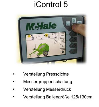 Neumaschine!! McHale F5-550 Rundballenpresse mit fester Ballenkammer, IControl 5 Bedienmonitor für halbautomatische und manuelle Bedienung, 18 verstärkten Presswalzen, hydraulisches Schwenkbodensystem, Vario - Netzbindungssystem mit einstellbarer Netzvorstreckung, Presskammer Durchmesser 125 cm, automatisch progressive Lagerschmierung, Ballenkammerverfüllung durch Hochleistungs-Rotor 540 mm, Pickupbreite: 2,10 m, 2-Leiter Druckluftbremse, 25 Messer Schneidwerk mit Gruppenschaltung, 6-reihige ungesteuerte Pickup flexibel, verstärkte Gelenkwelle Power Drive für Getriebe 540 U/min, Ballenablagerolle, Spring Tine Rollenniederhalter, Kamera für Ballenablage, Kameramonitor, Bereifung: 560/45 R 22,5Kontaktdaten: