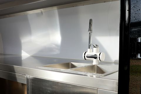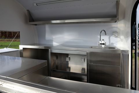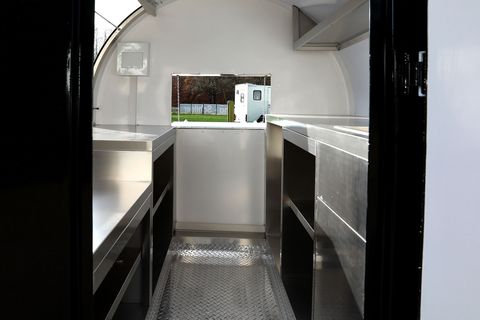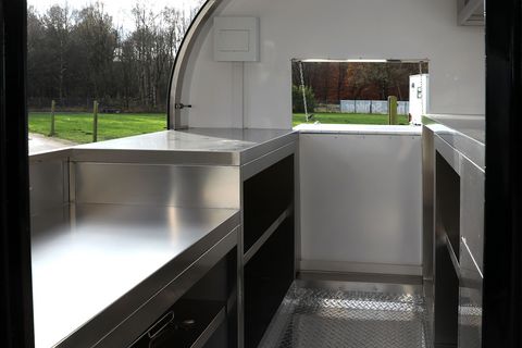 Der Foodtrailer ist vielseitig und individuell nutzbar - sowohl als mobiler Verkaufsanhänger als auch für Events und Vieles mehr. Unser Food-Trailer ist gefertigt aus einem Gitterrohrrahmen und mit Polyesterformteilen verkleidet. Zusätzlich steht der Food-Trailer auf 4 Heckstützen und einem Automatikstützrad. Der Anhänger verfügt über ein verzinktes Stahlchassis mit 1.350 kg Gesamtgewicht. Ausstattung: GG: 1.350 kg, NL: ca. 740 kg, EG: ca. 610 kg (ohne Zubehör) Innenmaße (LxBxH): 2120 x 1870 x 1950 mm, Bereifung: 13“ Außenmaße (LxBxH): 3620 x 2030 x 2410 mm Einachs, gebremst, Stützrad automatik Feuerverzinkte geschweißte V-Deichsel, Kunststoff-Kotflügel Gitterrohrrahmen mit Polyesterformteilen Knott-Gummifederachse mit Einzelradaufhängung 4 Kurbel-Abstellstützen, Stecker 13-polig 1 abschließbare Eingangstür hinten, Türöffnung (BxH): 595 x 1560 mm 1 große Verkaufs-Aufstellklappe seitlich links, 1 kleine Geschirrklappe vorne 1 separat einzuhängende Taschenablage vor der Verkaufsklappe Innen beidseitig Regale, Spülenschrank und Hochregal in VA Innen links auf 1 Meter 200 mm Tresenabsenkung für Doppelgeräte Innen rechts ein Fach für einen Standardkühlschrank Wassertank mit Pumpe und Abwassertank, LED-Beleuchtung, 16 Ampere-Stromanschluss 5 Einzelsteckdosen (unter der Arbeitsplatte) und Sicherungskasten mit Außenstromanschluss Inkl. Typenschein (Einzelgenehmigung für Österreich) In den Farben Schwarz und Weiß erhältlich! Individuelle Gestaltung durch Folierung gerne auf Anfrage möglich!Zul. Gesamtgewicht (t): 1,35