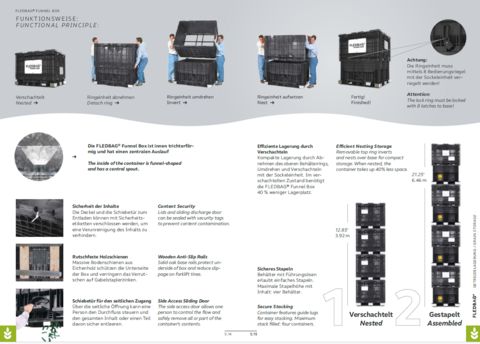 Maximale Effizienz durch Erweiterung der Fledbag Standardbox - hohe Gewichtskapazität - innenliegenden trichterförmigen Auslauf - lange Lebensdauer durch langlebige Konstruktion - hochbelastbare Kunststoffcontainer/Saatgutcontainer - Schutz für das Schüttgut gegen Regen, Nagetiere, Staub, Schmutz und Feuchtigkeit Kapazität: 1900 L Größe1435 (l) x 1143 (w) x 1854 (h) mm Gewicht200 kg Auch in lebensmittelkonformer Variante erhältlich!Kontaktdaten: