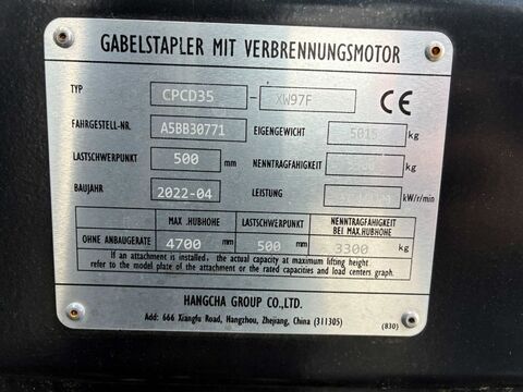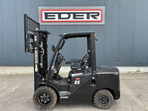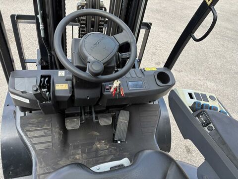 Bauart: Frontstapler / Dieselstapler, Tragkraft: 3500kg, Hubhöhe: 4680mm, Bauhöhe: 2315mm, Freihub: 1485mm, Bereifung vorne: Superelastik , Bereifung hinten: Superelastik , Beschreibung: Fahrerschutzdach, 3. und 4. Hydraulikfunktion mit Schlauchführung, Dachscheibe, vollgefederter Sitz mit Armlehne, Fingertippsteuerung, LED Beleuchtung mit zusätzlichem Blue-Light nach hinten, Zinkenverstellung mit Seitenschub Zustand Gerät KAT 1: Gewartet und geprüft nach HerstellerempfehlungenKontaktdaten:
