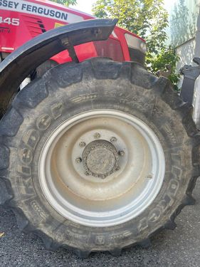 Kleber Traker - Pflegebereifung ca. 30 % Spurweite: 1,8 m 340/85 R38 hinten - Fixfelge mit Spurplatte Innenlochdurchmesser: 150 mm Lochkreisdurchmesser: 203,2 mm 8 Loch, 20 mm Durchmesser 340/85 R24 vorne - Fixfelge Innenlochdurchmesser: 221 mm Lochkreisdurchmesser: 275 mm 8 Loch, 20 mm DurchmesserDimension: 340/85 R38