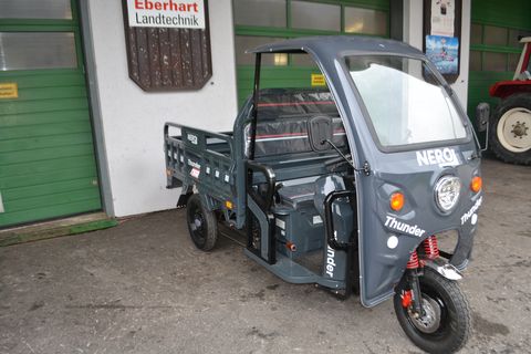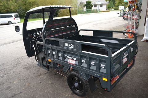 mit 600 Watt Elektro-Motor, Maximalgeschwindigkeit von 25 km/h kippbare Ladefläche für bis zu 300 kg mit Fahrerkabine optional Stollenbereifung (Aufpreis 150€ inkl. Mwst) Die leistungsstarke 45 Ah Batterie bringt dich 50 bis 80 km weit und ist innerhalb von 6 bis 8 Stunden wieder voll aufgeladen. Der Thunder zählt in Österreich gesetzlich als Fahrrad – das bedeutet: keine Anmeldung, kein Führerschein, keine Helmpflicht – und du darfst auf öffentlichen Straßen ganz legal unterwegs sein. LAGERMASCHINE- SOFORT VERFÜGBARLaufleistung (km): 0