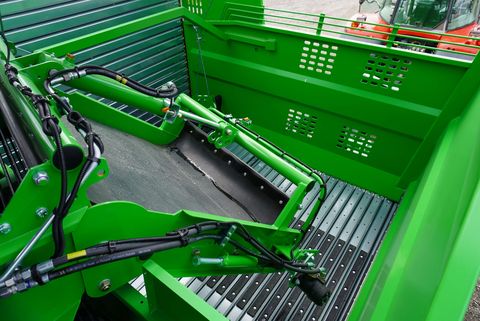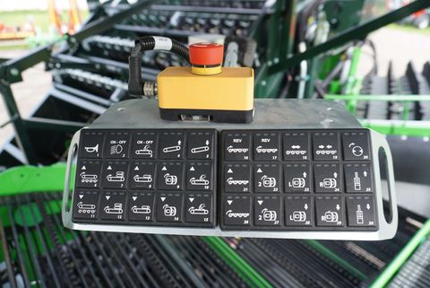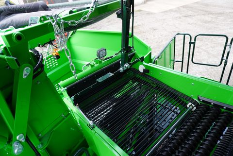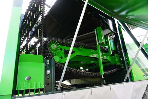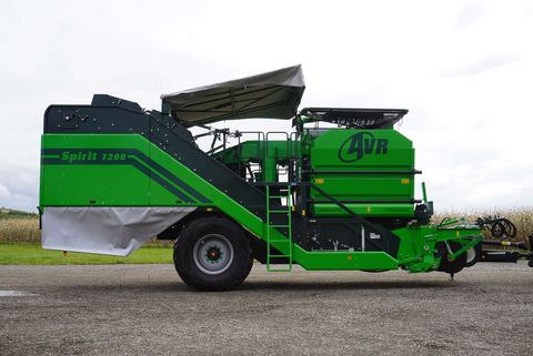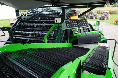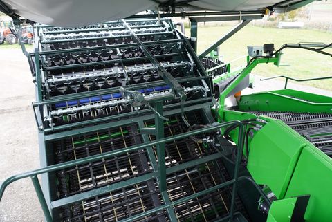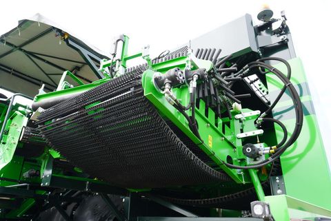 AVR Spirit 7200 Lagermaschine BJ 2024 2-reihiger Kartoffelroder 7t Bunker Rodekette: 40mm Siebkette: 36mm Krautkette: 210mm Igelband 40mm 2x2 Reihen Fingerkamm auf Querigelband, 75cm Reihenweite Kanalbreite 165cm 2-Leiter Druckluftbremse Kugelkupplung K80 Müller Touch 800 ISOBUS 2. Joystick in der Kabine für Abbunkern Schnellwechselrahmen mit Vorbereitung für hydr. Schwadaufnahme/ACC zusätzliches Getriebe für langsame Geschwindigkeit der Siebketten und Krautkette universeller Scharhalter mit Steinsicherung am Rodeschar Stahl Laufrollen im Rodekette Edelstahlbleche im Vorderbau Gummiklappe zur Reinigung montiert an der Antriebswelle der Rodekette Dammmittenfindung Elektro-hydraulische Dammdruckminderung Hydraulische Rodetiefenverstellung Krautzupfwalze automatische Boostfunktion 1. Igelband automatische Neigungskorrektur Igelbänder automatische Neigungskorrektur Achse automatischer Bunkerboden elektrische Höhenverstellung 3-fach Ableitwalze elektrische Höhen- und Winkelverstellung Fingerkamm Sortierwalzen im Verlesetisch, Abstand verstellbar Drehzahl Beimengenband unabhängig von Verleseband einstellbar Beimengenrückführband hydraulisch klappbarer Kistenfülltrichter Steinsammelkasten Schutzdach inkl. LED Leuchte 1 Monitor und 4 Kameras für: Verlesetisch, Igelband/Krautzupfwalze, Rückwärtsfahren, Bunkerauslauf Bereifung: 850/50 R30.5 Trelleborg Radial Weitere Optionen auf AnfrageHektar (ha): 0