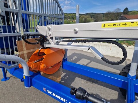 Jetzt in die Zukunft investieren und Steuerlich profitieren ! Mit je 30% Sonderabschreibung in den ersten drei Jahren möglich ! Keine komplizierten Förderanträge ! – die steuerliche Umsetzung erfolgt über Ihren Steuerberater Forstanhänger: - Scandic ST-10D - Außenbreite nur 2,2m - 13 Tonnen zulässiges Gesamtgewicht - Einhänge Ösen für Spanngurt - hydraulische B-Abstützung inkl. Sperrblock - hydraulische Deichsellenkung 2 Zylinder je 80° schwenkbar - 2 Achs Druckluftanlage - 5 Paar Rungen (erweiterbar) - Rungen und Prallgitter Verzinkt - Einschiebbare Beleuchtung (Blinker Rücklicht) - Räder 400/60-15.5 Forstfelgen - 40° Boogieachse - Rahmenverlängerung (Ausziehbar) um ca. 70cm - Aufklappbare Plattform mit einer Hand komplett zu öffnen - Alle Zylinder geschützt - Inklusive 25kmh Betriebserlaubnis Bedienung: - Kombi-Komfortsteuerung mit 8 Funktionen - 2 Kreuzhebel mit Kippschalter für Zange und Teleskop elekt. bedienbar - 2 Hebel für Stützbeine Forstkran: - Kran 7,20m mit Teleskop 7,90m Greiflänge - 4-Zylinder Schwenkwerk 18,3kn - Teleskopzylinder innenliegend - Einstellbare Kunststoff Gleitlagerbuchsen in den Teleskop Arm - 850kg (86,65kn) bei maximaler Reichweite - Greifer SG-25 mit 4,5 to Rotator und 1650mm Öffnungsweite Auf Anfrage: - Rückewagen von 8t bis 16t - Krane von 4,1m bis 8,3m A oder B Abstützung - Greifer von 910mm bis 1670mm Öffnungsweiten - Ölkühler - Funkfernsteuerung - Zusätzliches Rungenpaar - Werkzeugkiste - Kranwinde mit Funk und 2,2t Zugkraft 35m Seil - Eigene Ölversorgung mit Gusspumpe und 70l Tank Bilder können Zusatzausstattung beinhalten Der Kran wurde aus hochfestem Strenx Stahl gefertigt, ein Schwedischer Feinkorn-Hochleistungsstahl von SSAB und dank der Plasmaschweißung sind Scandic Rückewagen sehr robust und langlebig. Somit ist der komplette Rückewagen für den rauen Alltag im Forst perfekt gemacht Wir, als einziger offizieller Importeur für Scandic Rückewagen im Raum Süddeutschland, garantieren für Service und Ersatzteilversorgung durch unser Serviceteam, mobilem Werkstattwagen und unserem vor Ort Service. Gerne können wir Ihnen eine Finanzierung über eine Partnerbank anbieten.Kontaktdaten: