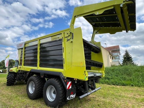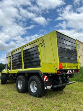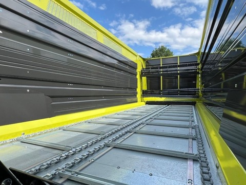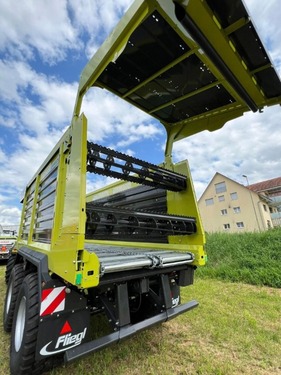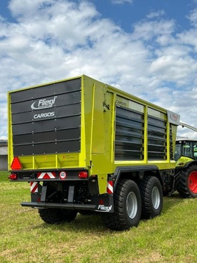 Fliegl Cargos HTW 740 TrendLadevolumen ca. 38m3 / Zul. Gesamtgewicht 24t / Leergewicht 8.25tTandemachse mit Parabelfederung und Nachlauflenkung, hydraulisch sperrbarDruckluftbremsanlage mit ALBBereifung 710/50 R26.5Knickdeichsel, hydraulisch mit zwei doppeltwirkenden HydraulikzylinderKugelkopf mit Untenanhängung Scharmüller K-80zul. Stützlast 4000kgStützfuss, integriert und einstellbarWagenboden aus feuerverzinkten StahlblechHD-Kettenstränge (4x Flachgliederkette) mit geschraubten U-Leisten, hydraulisch reversierbarKratzbodenkettenspannung, manuellAntrieb über zwei Hydromotoren, beidseitig im C-Profil integriert.Metallaufbau geschlossen und nach hinten konisch öffnendRungen und Bordwände (Kipperprofil) verschraubtFrontgatter um 30 grad nach vorne angewinkelt mit SichtschlitzenHeckklappe mit hydraulischer Betätigung und mechanischer VerriegelungAnzeige Heckklappenöffnung über ManometerKratzbodenantrieb 2-stufig (Rest-Schnellentleerung)Direktbedienung über Steuergeräte (3x DW + 1x EW)Konstruktion au
