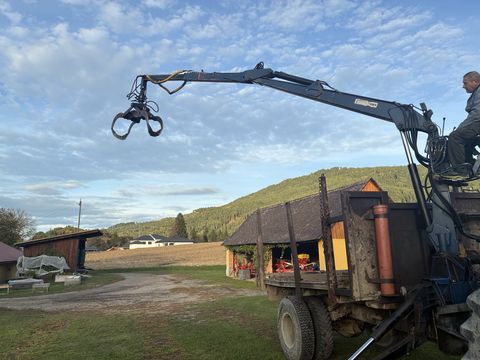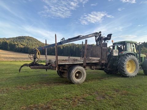 Verkauft wird ein robuster Eigenbau Forstanhänger mit einem Penzkran, der durch seine durchdachte Ausstattung überzeugt. Der Anhänger ist mit einem Hochsitz ausgestattet, der über eine Pedalsteuerung und Sitzheizung verfügt, um auch bei längeren Arbeitseinsätzen Komfort zu bieten. Der Forstanhänger ist zudem mit einem Flap-Down-System ausgestattet, das zusätzliche Flexibilität bei der Handhabung ermöglicht. Der Anhänger der Marke Sonstige ist ein Modell, das sich ideal für den Einsatz im Forstbetrieb eignet. Zur Ausstattung gehören drei Rungenpaare, die eine sichere Befestigung von Baumstämmen gewährleisten. Die Kransteuerung erfolgt über eine Mehrhebelsteuerung, die eine präzise und einfache Bedienung ermöglicht. Mit einer Einachse ist der Anhänger wendig und leicht zu manövrieren, was besonders in unwegsamem Gelände von Vorteil ist. Der Endlos Rotator sorgt für eine flexible und effiziente Handhabung der Ladung. Die Zustandsklasse des Forstanhängers ist als genügend (Klasse 3) eingestuft, was auf einen soliden und funktionstüchtigen Zustand hinweist, der jedoch bereits Gebrauchsspuren aufweisen kann. Insgesamt bietet dieser Forstanhänger eine robuste und zuverlässige Lösung für Arbeiten im Wald und bei der Holzernte.Öffnungsweite (cm): 145