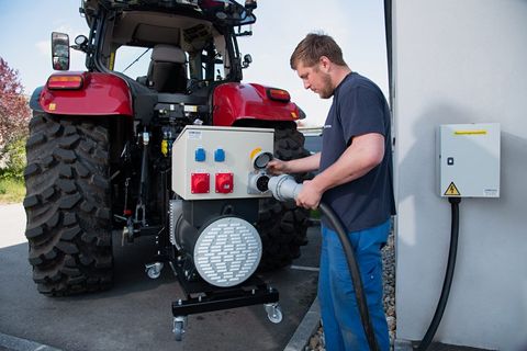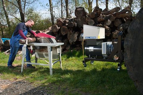 Der Stromgenerator der Marke Moll, Modell ZGN 28/30, ist ein leistungsstarker und vielseitiger Generator. Angetrieben von einem robusten 33 PS Motor, bietet dieser Generator eine beeindruckende Scheinleistung von 30 kVA und eine Wirkleistung von 24 kW. Für den optimalen Betrieb wird eine Traktorleistung von 65 PS empfohlen. Mit einem Eigengewicht von etwa 260 kg ist der Generator sowohl für den Feldbetrieb als auch für den Hausbetrieb geeignet. Er verfügt über eine Vielzahl von Anschlüssen, darunter zwei Schuko-Steckdosen mit 16A, eine CEE 5-polige Steckdose mit 16A und eine weitere CEE 5-polige Steckdose mit 32A für den Feldbetrieb. Für den Hausbetrieb ist eine 5-polige 63A Steckdose vorhanden, wobei der 63A Stecker im Lieferumfang enthalten ist. Der Generator ist mit einer Dreipunktaufhängung ausgestattet, was die Installation und den Transport erleichtert. Der Industrie Synchrongenerator ist ein Langsamläufer mit 1500 U/Min und arbeitet bürstenlos, was für eine lange Lebensdauer und geringe Wartungskosten sorgt. Der eingebaute AVR3 Spannungsregler mit 3-phasiger Ist-Werterfassung garantiert eine stabile Spannungsversorgung. Zusätzlich ist der Generator mit einer Schutzabschaltung ausgestattet, die bei Über- oder Unterfrequenz, Über- oder Unterspannung, Linksdrehfeld, Kurzschluss und Überlast automatisch eingreift, um Schäden zu vermeiden. Dieser Generator repräsentiert die neue Generation der in Österreich hergestellten Stromgeneratoren und ist als optimal geregelter Zapfwellengenerator konzipiert. Er wird inklusive eines Radsatzes geliefert, ist sofort verfügbar und kommt neu und original verpackt. - 30 kVA - Wirkleistung 24 kW - Empfohlene Traktorleistung 65 PS - Eigengewicht ca. 260kg - Feldbetrieb und Hausbetrieb - Steckdosen Feldbetrieb: 2x Schuko 16A, 1x CEE 5pol. 16A, 1x CEE 5pol. 32A - Steckdose Hausbetrieb: 1x 5pol. 63A (63A Stecker inkludiert) - Dreipunktaufhängung - Industrie Synchrongenerator - Langsamläufer 1500 U/Min - Bürstenlos - AVR3 Spannungsregler mit 3-Phasiger Ist-Werterfassung - Schutzabschaltung bei: - Über-/Unterfrequenz - Über-/Unterspannung - Linksdrehfeld - Kurzschluss - Überlast * Neue Generation - Made in Austria * OPTIMAL Geregelter Zapfwellengenerator * Inkl. Radsatz * Sofort Verfügbar - neu & original verpacktKontaktdaten: