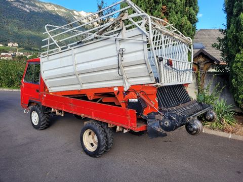 Transporter Reform Muli 500, 48PS 3-Zylinder-Perkins-Motor, geschlossene Kabine, kurzer Radstand, Bereifung 10.0/75-15.3 mit Zwillingsbereifung hinten, Kipperbrücke, Aufbauladewagen Reform ******* Transporter Reform Muli 500, 48CV motore Perkins a 3 cilindri, con cabina chiusa, passo corto, pneumatici 10.0/75-15.3 con gemellaggio posteriore, cassone ribaltabile, caricatore fieno ReformKontaktdaten: