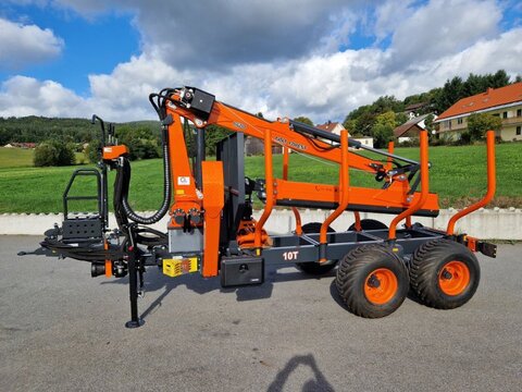 Jetzt in die Zukunft investieren und Steuerlich profitieren ! Mit je 30% Sonderabschreibung in den ersten drei Jahren möglich ! Keine komplizierten Förderanträge ! – die steuerliche Umsetzung erfolgt über Ihren Steuerberater Forstanhänger: MTM 10T Doppelrohrrahmen - Außenbreite nur 2,15m - 8 Tonnen zulässiges Gesamtgewicht - auf nicht öffentlichen Straßen 10to zul. Gesamtgewicht - Einhänge Ösen für Spanngurt - hydraulische B-Abstützung inkl. Sperrblock - hydraulische Deichsellenkung 2 Zylinder - eine Achse Auflauf gebremst - eine Achse Hydraulisch gebremst - 4 Paar Rungen - 5 Rungenbänke - Flexible Beleuchtung (Blinker Rücklicht) - Räder 400/60-15.5 Forstfelgen - 40° Boogieachse - Rahmenverlängerung (Ausziehbar) um ca. 60cm - Aufklappbare Plattform mit einer Hand komplett zu öffnen - Aufstiegsleiter - Alle Zylinder geschützt Inklusive 25kmh Betriebserlaubnis Bedienung: - Kombi-Komfortsteuerung mit 8 Funktionen - 2 Kreuzhebel mit Kippschalter für Zange und Teleskop elekt. bedienbar - 2 Hebel für Stützbeine Forstkran: - Kran 8,60m mit Teleskop 9,2m Greiflänge - 4-Zylinder Schwenkwerk 15,5kn - Doppelteleskop - Teleskopzylinder geschützt - Einstellbare Kunststoff Gleitlagerbuchsen in den Teleskop Arm - 530kg Hubkraft bei maximaler Reichweite - 5 m/t - 65kn Netto Hubmoment - Greifer G-18 mit 4,5 to Rotator und 1200mm Öffnungsweite Bilder können Zusatzausstattung beinhalten. Auf Anfrage: - Andere Rückewagen und Kräne - Andere Zangen - Andere Bereifung - Eigenölversorgung mit Gusspumpe, Zapfwelle und Öltank - Kranwinde mit Funk und 2,2t Zugkraft 35m Seil - Funkfernsteuerung Gerne können wir Ihnen eine Finanzierung über eine Partnerbank anbieten. Die Kräne sind aus hochfestem Strenx Stahl gefertigt, ein Schwedischer Feinkorn-Hochleistungsstahl von SSAB.Kontaktdaten: