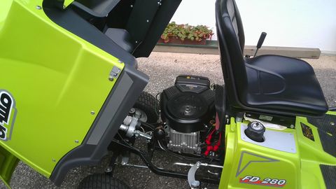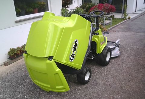 Der Grillo Rasentraktor, Modell , ist ein leistungsstarker und vielseitiger Frontmäher, der ideal für die Pflege großer Rasenflächen geeignet ist. Angetrieben von einem robusten B&S Motor mit 479 ccm Hubraum und 16 PS, bietet dieser Rasentraktor eine effiziente und zuverlässige Leistung. Das 3-Messer Mähwerk sorgt für einen sauberen Schnitt mit einer beeindruckenden Arbeitsbreite von 113 cm. Mit einem Baujahr von 1235 und 1234 Betriebsstunden befindet sich dieser Rasentraktor in einem besonders guten Zustand (Zustandsklasse 1). Der Benzinantrieb garantiert eine starke Leistung und die Mulchfunktion ermöglicht eine umweltfreundliche Rasenpflege. Zusätzlich verfügt der Rasentraktor über eine Grasfangbox mit einem großzügigen Sammelvolumen von 280 Litern, die elektrisch entleert werden kann. Der hydrostatische Fahrantrieb mit Differentialsperre sorgt für eine sanfte und präzise Steuerung, während die Rasenbereifung optimalen Bodenkontakt gewährleistet. Für zusätzlichen Komfort ist der Rasentraktor mit einem Komfortsitz und einer elektrischen Höhenverstellung ausgestattet. Eine Anhängerkupplung erweitert die Einsatzmöglichkeiten dieses vielseitigen Geräts. Mit seiner durchdachten Ausstattung, darunter der leistungsstarke 2-Zylinder Motor und die Möglichkeit des Sammelns und Mulchens, ist der Grillo Rasentraktor die ideale Lösung für anspruchsvolle Gartenbesitzer, die Wert auf Effizienz und Komfort legen.Eigengewicht (kg): 320