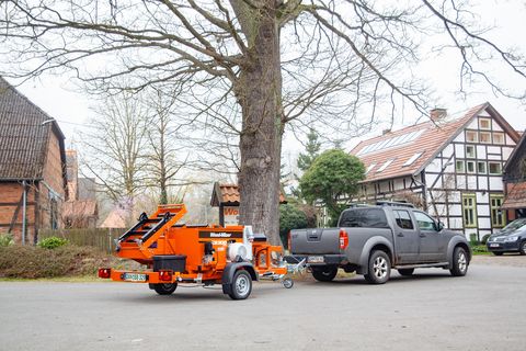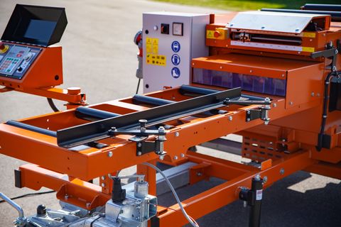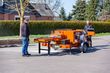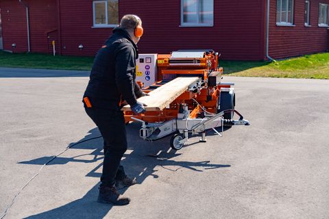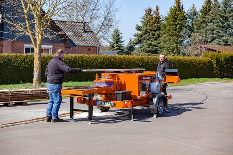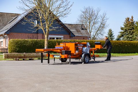 Die Wood-Mizer Kreissäge des Modells EG300, Baujahr 2025, bietet eine beeindruckende Kombination aus Leistung und Flexibilität. Angetrieben von einem starken 20 PS Motor und mit einer maximalen Materialbreite von 55 cm, ist diese Maschine ideal für anspruchsvolle Holzbearbeitungsprojekte. Besonders hervorzuheben ist, dass die Maschine noch unbenutzt ist, da sie 0 Betriebsstunden aufweist. Der EG300 ist auch als mobile Version erhältlich, was maximale Flexibilität im Einsatz garantiert. Das schwenkbare Bedienpult ermöglicht eine ergonomische Steuerung der Maschine, während der Ausfuhrtisch für den Transport platzsparend hochgeklappt werden kann. Eine seitlich wegklappbare Anhängerkupplung sorgt während des Betriebs für mehr Bewegungsfreiheit rund um die Säge. Im Besäummodus arbeitet der EG300 mit zwei Kreissägeblättern: eines ist fest positioniert, das andere verfügt über eine elektrische Breitenverstellung für präzise Maßschnitte. Eine optionale Laseranzeige projiziert die Schnittlinie direkt auf das Werkstück, was zusammen mit einem einstellbaren Seitenanschlag das Führen bereits einseitig gerader Bretter erleichtert. Für den Mehrblattbetrieb kann der EG300 mit bis zu fünf Sägeblättern ausgestattet werden. Vier der Blätter sind für Standardbreiten fest montiert, während das fünfte Blatt verstellbar ist – ideal für wiederholgenaue Serien und flexible Aufteilungen. Die durchdachte Materialhandhabung umfasst Rücklaufrollen oben an der Abdeckung, die ein schnelles Zurückführen und erneutes Bearbeiten von Brettern ermöglichen. Der Zu- und Ausführtisch ist abnehmbar, was den Transport und die platzsparende Lagerung erleichtert. Der stufenlose Vorschub von 0–20 m/min erlaubt eine angepasste Schnittqualität und Leistung. Insgesamt bietet die Wood-Mizer EG300 Kreissäge eine exzellente Kombination aus Vielseitigkeit, Leistung und Benutzerfreundlichkeit, die sie zu einer hervorragenden Wahl für professionelle Holzverarbeitungsbetriebe macht.Zul. Gesamtgewicht (kg): 1500