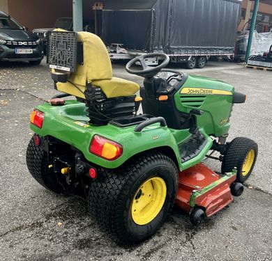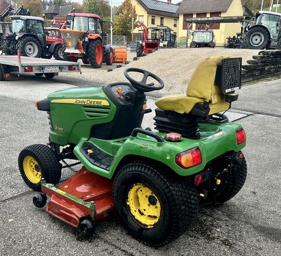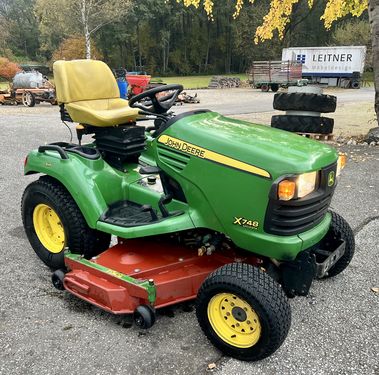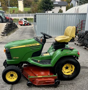 Rasentraktor John Deere X748 aus Behördenbesitz Der John Deere X748 Rasentraktor ist ein leistungsstarkes und zuverlässiges Gartenfahrzeug, das von 2006 bis 2012 produziert wurde. * Yanmar 3TNV76 - 3 Zylindermotor * Kraftstoffart: Diesel * Hubraum: 1116 cm³ * Leistung: 23 PS * stufenloses Getriebe * Höchstgeschwindigkeit: 15 km/h * Lenkung: Hydrostatische Servolenkung * Bremsen: Nassscheibenbremsen * Bereifung: 18x8.50-8, 26x12.00-12 - 100 % Reifenprofiltiefe * samt Datenauszug Das Gerät kann gerne jederzeit bei der Firma Gruber besichtigt werden. Zustellung/Abholung jederzeit möglich. Alle Angaben ohne Gewähr.Eigengewicht (kg): 760