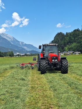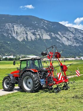 Heuwender Massey Ferguson TD 676 DN Vorführmodell: nur 1 Saison verwendet (ca. 4 Hektar pro Schnitt) - Dreipunktanbau mit Nachlaufeinrichtung - Arbeitsbreite 6,60m - 6 Kreisel - 6 Zinkenarme je Kreisel - Bereifung 16/6.50-8 - Gelenkwelle mit Freilauf - stabile Rahmengelenke - geschlossene Kreiselköpfe (gegen Schmutzeintrag) - verzinkte Zinkenträger (Flachstahl) - Vierkant-Rahmenrohre + Tastrad 15/6.00-6 + hydraulische Grenzzetteinrichtung + Beleuchtung für WarntafelnHektar (ha): 16