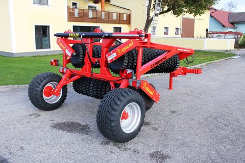 - Prismenringe Ø 500/550 mm - Breitreifen BKT 15.0/55 - 17 mit grobstolligem Profil - Optimaler Bodenkontakt durch 3 flexible Walzeneinheiten - Optimale Gewichtsverteilung und Wendigkeit dank Unterlenkeranhängung - 90-Grad-Lenkeinschlag möglich - extrem vielseitig: Zum Andrücken der Nachsaat im Grünland, Im Frühling zur Wiederherstellung des Bodenschlusses nach Auffrieren im Winter oder zum Andrücken direkt nach der Saat - Beleuchtung - StützfußHektar (ha): 0