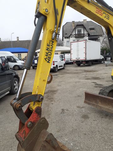 Wacker Neuson 3503 RD ist in einem guten gebrauchten Zustand – Schnellwechsler mechanisch MS03 – 4 Zylinder Diesel-Yanmar-Motor 23,7 kW – VDS Kabine – Knickmatik – Hammerleitung – Greiferleitung – Schnellwechslereinrichtung – Beheizbare Kabine – Planierschild Kette 70% Mwst nicht ausweisbar hydr. Böschungslöffel und ein Tieflöffel . Witz und Bruckner e.U
