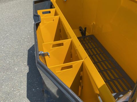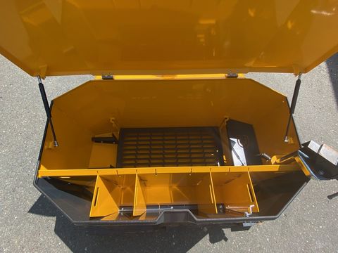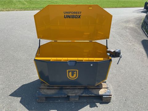 Sofort Verfügbar! Uniforest Unibox Forstkiste. Ausstattung & Details: - Tragfähigkeit (kg): 500 - Breite (mm): 1270 - Tiefe (mm): 850 - Höhe (mm): 825 - Empfohlene Schlepperkraft (PS): 88-120 - Anbaukategorie: I & II - 3-Punktanbau - Eigengewicht (kg): 140 - Verstellbarer Regalboden - Verstellbare Trennwände - Halter für Kanister - Gasdruckdämpfer für den Deckel - Schloss, zum abschließen der Unibox - Reflektierende Aufkleber - Inkl. Schraubstock Alle Vorteile auf einen Blick: *Fächer - Die Fächer sind für versch. Werkzeuge ausgelegt, die sicher aufbewahrt & transportiert werden können. *Verstellbares Regal - Leicht verstellbares Regal, 3 verschiedene Höhen oder ganz zu entfernen. *Herausnehmbare Trennwände - Diese lassen sich beliebig anordnen. *Schloss - zum sicheren aufbewahren Ihres Transportgutes für zusätzlichen Schutz. *Zusätzlicher Stauraum - Für Forstketten an der äußeren Rückseite des Kastens. *Gasdruckdämpfer für Deckel - zum Sanften Öffnen & Schließen der Unibox. *Sicherheitsreflektierende Etiketten - Diese sind im gesamten Außendesign der Unibox integriert. *Gegengewichtsfunktion - Kann als kleines Frontgewicht verwendet werden. Besichtigung jederzeit nach telefonischer Absprache möglich! Zustellung in ganz Österreich möglich.Öffnungsweite (cm): 0