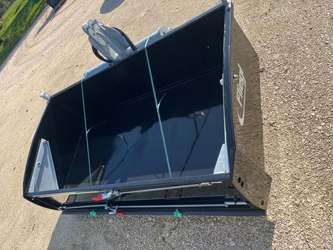 Heckschaufel 2200 mm / mit Dreipunkt-, Euronorm- und Stapleraufnahme 2 Zylinder Massive Ausführung VF Gerät Features: » 3-fache Aufnahme für Stapler-, Dreipunkt- und Euronormaufnahme » Sehr gut als Hochkippschaufel geeignet, Kippwinkel ca. 111° » Aufnahmebock verzinkt, Wanne lackiert (novagrau) » Höheres Überladen als mit einer herkömmlichen Kippschaufel » Lagerung mit Gleitlager-Buchsen » Flexible Klappwand: kann durch Umstecken als Verlängerung der Ladefläche oder als Rückwanderhöhung genutzt werden » Schürfleiste aus HB 500, schraubbar, abgeschrägt, aus einem Stück gefertigt – montiert mit Senkschrauben, somit bündig mit der Schürfleiste » Schnelle und einfache Verriegelung der Klappwand Technische Details: » Volumen: ca. 1,10 m³ » Klappwand: 1140 mm tief, innen 500/430 mm hoch » Stapleraufnahmenträger: Breite innen 148 mm; ist zugleich Lagerung von Auskippmechanismus, dadurch besonders robust » 2-Zylinder-System » Max. Traglast: 2,5 to. » 1 doppeltwirkender Anschluss erforderlich » Eigengewicht: ca. 485 kgNutzlast (kg): 2000