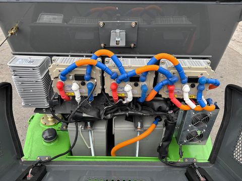 Elektro Teleskop Hoflader EREL1000 – Jetzt noch besser - mehr Lenkeinschlag sowie Hubhöhe! Der EREL1000 ist ein TOP-Gerät für alle, die auf maximale Effizienz und Flexibilität setzen und Kosten sparen wollen. Technische Daten: Traglast: 1000 kg Primäre Ladehöhe: 3053 mm Maximale Schütthöhe: 2714 mm Sekundärladehöhe: 3620 mm Maximale Steigfähigkeit: 20° Oszillationswinkel: 8° Gesamtabmessungen (L×B×H): 3822 * 1270 * 2380 mm Eimerbreite: 1200 mm Radstand: 960 mm Min. Bodenfreiheit: 210 mm Eigengewicht: 2360 kg Batteriemodell Nr.: 3-EVF-200A Nennkapazität (3 Std.): 200 Ah Anzahl Batteriegruppen: 12 Nennspannung: 72 V Arbeitszeit: 4 Std Motor Nr.: YQP5.72AF.48P Stromspannung: 72 V Leistung: 5000 W Verschiebung (ml/r): 14 Reifentyp: 29*12.50-15 Betriebsdruck der Reifen (MPa): 0.3 Reifen Menge: 4 Art des Lenkhydrauliksystems: Vollhydraulisches Lenksystem Systemdruck: 16 MPa Art der Lenkungspumpe: Außenzahnradpumpe Lenkzylinderbohrung: Ø65 mm Garantie: 1 Jahr Garantie auf Ersatzteile. Preisdetails: Der angegebene Preis bezieht sich auf das Modell wie am Bild mit Kabine mit Schaufel und Palettengabel. Sichern Sie sich jetzt Ihr TOP-Gerät! Verpassen Sie nicht diese Gelegenheit, Ihre Arbeitsabläufe effizienter zu gestalten – der Elektro Teleskop Hoflader EREL1000 wartet auf Sie!Kontaktdaten: