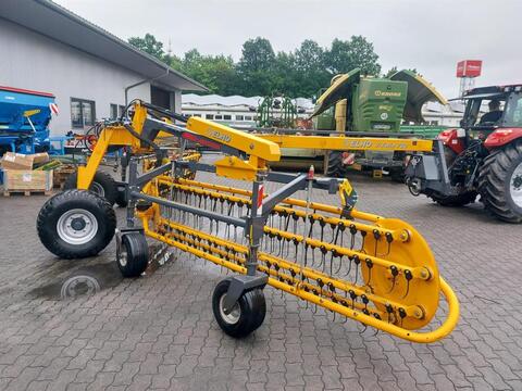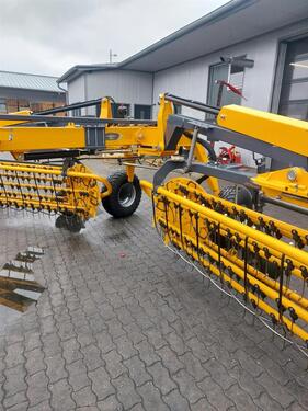 ________ Mittelschwader, * Volhydr. Direktantrieb, keine Getriebe, Kurvenbahnen, Gelenkwellen etc. * Stufenlos verstellbare Arbeitsbreite vom 3,0m - 8m (mit 1xDW) * Spurgetreuer Nachlauf durch Achsschenkellenkung * Weniger Verschmutzung durch Heben des Futters * Keine 540 U/min erf. Sprit sparen ! * Betrieb schon mit 25L/min * Geringe Bauhöhe, nur 1,9m * Geringe Breite, 2,50m Bordhydraulik- PDF Datenblatt
