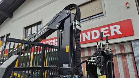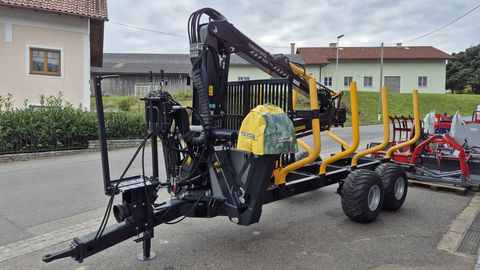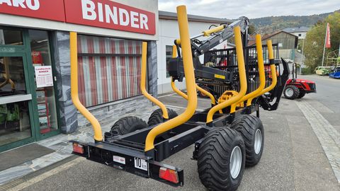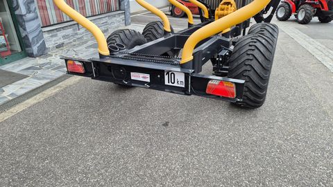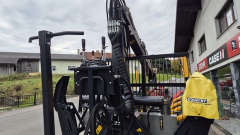 **Produktbeschreibung: Forstanhänger / Rückewagen der Marke Country, Modell H110D** Der Ausstellungs-Forstanhänger Country H110D von 2021 besticht durch seine solide Bauweise und umfangreiche Ausstattung. Mit einer Außenbreite von 228 cm und einer Ladeflächenlänge von 4,05 m bietet dieser Forstanhänger eine beeindruckende Nutzlast von 11 Tonnen. Die Rahmenverlängerung und der Doppelrahmen-Anhänger sorgen für zusätzliche Stabilität und Flexibilität im Einsatz. **Hauptmerkmale:** - **Baujahr:** 2021 - **Breite:** 228 cm - **Rahmen:** Doppelrahmen-Anhänger - **Bremse:** Hydraulische Bremse auf alle 4 Räder - **Rungenpaare:** 4 drehbare Rungenpaare - **Kransteuerung:** Kreuzhebelsteuerung - **Bauartgeschwindigkeit:** 10 km/h - **Achsen:** Tandem-Pendelachse (Boogiachse) mit verstärkter Bereifung 400/60-15,5 Traktion mit 16PLY und Forstfelgen mit Felgenverstärkung sowie schraubbarem Ventilschutz - **Deichsel:** Hydraulische Knickdeichsel mit 40° Lenkung durch 2 Zylinder - **Lichtanlage:** Klappbare LED-Beleuchtung - **Kran:** Dreipunkt-Flanschkran Country K 850 PRO mit 8,50 m Reichweite, 1.195 kg Hubkraft bei 3,5 m, 380° Schwenkradius und 16 kNm Schwenkmoment - **Rotator:** Endlos Rotator - **Zange:** Große Forstzange 026 mit 1,51 m Öffnungsweite - **Ölversorgung:** Eigene Ölversorgung mit Axialkolbenpumpe auf der Deichsel, großer Öltank mit Filter - **Zusätzliche Ausstattung:** FlapDown Abstützung, Elektro ON/OFF Steuerung, klappbares Stepodest mit Steuergeräthalterung, Kurbelstützfuß - **Zustandsklasse:** Besonders gut (Klasse 1) Dieser Forstanhänger ist ideal für professionelle Anwender, die Wert auf Zuverlässigkeit und Effizienz legen. Der Normal-VK Preis beträgt € 40.990,- inklusive, während der Listenpreis inklusive Vorfracht bei € 49.000,- liegt. Erleben Sie die Qualität und Leistungsfähigkeit des Country H110D Forstanhängers und sichern Sie sich eine robuste und langlebige Lösung für Ihre Forstarbeiten.Zul. Gesamtgewicht (kg): 12500