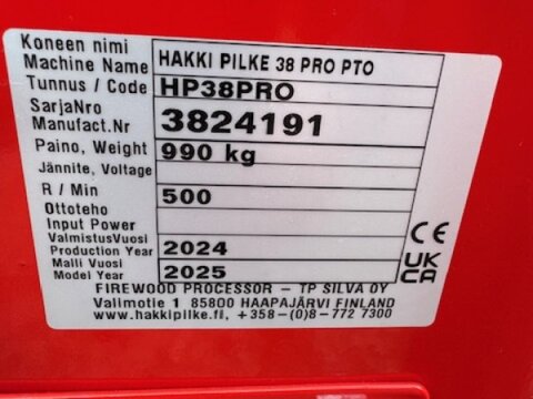 HAKKI PILKE 38 PRO Die neuste Generation des Sägespalters Hakki Pilke Pro verfügt nicht nur über 25 % mehr Spaltkraft (10 to.) sondern hat auch zusätzlich nochmals deutlich an Geschwindigkeit zugelegt. Der Serienmäßig verbaute Automatische Kettenspanner AC10 (pat.) und die neue innovative Bedienung Hakki Cut (Sägen und Spalten per Knopfduck), (diese wird schon seit über einem Jahr äußerst erfolgreich in der Hakki Pilke 43 verbaut), sorgen für den optimalen Bedienkomfort. Produktmerkmale: Maximaler Durchlass: 38 cm Spaltkraft an der ersten Klinge 13 to. Profimaschine für mittelstarkes Holz Technische Daten Kraftbedarf ab 20 kW Modell Z 500 UpM. Modell E 10 kW Modell ZE 10 kW / 500 UpM. Max. Durchmesser 38 cm Spaltdruck 10 to. Spaltkraft an der ersten Klinge 13 to. Kettensäge 16 Zoll Automatischer Kettenspanner Serie Sägebedienung Elektrohydraulisch Ölpumpe für Kettenschmierung Serie Schnellgangventil automatisch Spaltgeschwindigkeiten 2 Spalttakt ca. 3 sec. Spaltlänge bis 60 cm Längeneinstellung mechanisch Zuführband ca. 20,5 cm breit hydr. angetrieben Zusätzliche Einzugsrolle hydr. angetrieben auf Wunsch Spaltwerkzeug 2 / 4-fach Spaltwerkzeug auf Wunsch 6 / 8 / 12-fach Spaltwerkzeugverstellung Hydraulisch Öltank/Füllmenge 85 / 75 ltr. Austragsband mechanisch schwenkbar 4,0 mtr. Serie Austragsband mechanisch schwenkbar 5,0 mtr. auf Wunsch Austragsband hydraulisch schwenkbar auf Wunsch Splitterholzabscheidung im Austragsband Serie Werkzeugbox Serie Hydraulikanschluß für Zusatzgeräte Serie Zentralschmierung auf Wunsch Gewicht mit Förderband ab ca. 880 kg Transportmaße HxBxT 2.520 x 2.480 x 1.300 mmKontaktdaten: