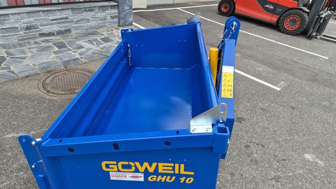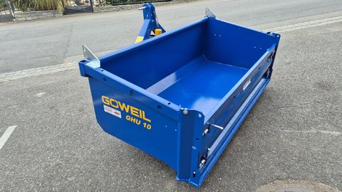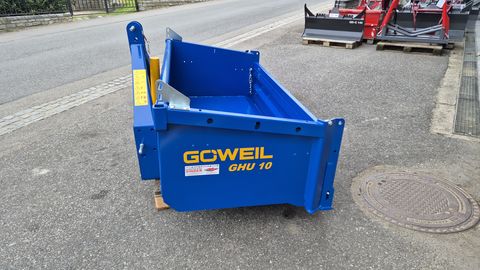 GÖWEIL HOCHKIPPSCHAUFEL GHU 10 2000 Egal ob im gewerblichen, land- oder forstwirtschaftlichen Gebrauch - die GHU 10 ist DAS Allroundtalent unter den Hochkippschaufeln von GÖWEIL. OFFENER 3-PUNKT-RAHMEN : .Perfekt zum Planieren oder Schneeräumen. Kein Material bleibt im Rahmen hängen! STEHENDER, GUT GESCHÜTZTER TELESKOPZYLINDER : Der Teleskopzylinder ist im 3-Punkt-Rahmen nicht nur perfekt geschützt und integriert, sondern besticht auch durch seine extreme Hubkraft. VORTEIL- SCHAUFELBODEN Durch den flachen Schaufelboden lässt sich die GHU mühelos und einfach beladen. PENDELBORDWAND Die Pendelbordwand besteht aus einem Bordwandprofil und hält somit höheren Belastungen stand. Die Bordwand kann auch als Muldenverlängerung verwendet werden. GRUNDAUSSTATTUNG von 30 - 75 kW (~ 40 - 100 PS) // Nutzlast bis zu 2.500 kg doppelt wirkender 2-stufiger Teleskopzylinder, stehend im 3-Punkt-Rahmen Dreipunktanbau Kat. I und Kat. II Flacher Schaufelboden mit aufgeschweißter Schürfleiste aus HARDOX 500 Abnehmbare Rückwand/Pendelbordwand Techn. Daten: Arbeitsbreite innen : 2.000mm Aussenbreite : 2.120mm Arbeitstiefe : 1.000mm Höhe Stirnwand : 630mm Höhe Bordwand : 450mm Volumen : 1.080l Eigengewicht : 384kg Auch mit 1,85m und 2,20m Arbeitsbreite lagernd und prompt verfügbar !Nutzlast (kg): 2500